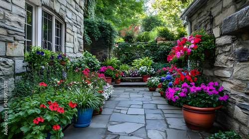 Vibrant Stone Pathway Garden with Blooming Flowers