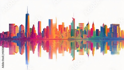 city, skyline, urban, building, skyscraper, water, colourful, vibrant, geometric, abstract, architecture, metropolis, modern, contemporary, design, illustration, graphic, art, style, image, view, landscape, city landscape, horizon, tower, structure, shape, colours, hue, shades, tint, bright, high-coloured, dynamic, energy, powerful, majestic, impressive, iconic, famous, monumental, elegant, graceful, beauty, aesthetic, scene, panorama, graphic design