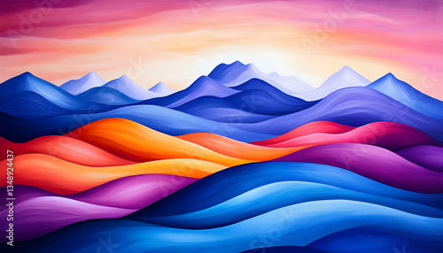 mountain, hill, landscape, sunset, sunrise, sky, colourful, vibrant, art, painting, abstract, illustration, nature, scenery, wave, texture, colours, design, background, artwork, image, graphic, visual, pattern, bright, bold, fantasy, dreamy, serene, peaceful, calm, tranquil, majestic, beauty, aesthetic, home decor, decor, digital, canvas, colours, shades, hue, smooth, soft, curve