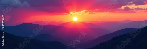 Vibrant sunset illuminates multiple hill layers, creating a dramatic scene , environment, elevations, evening