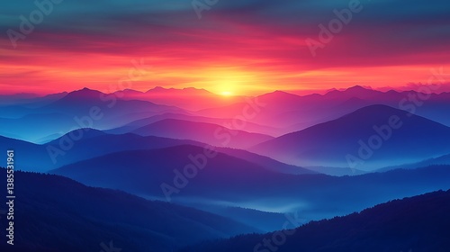 Vibrant sunset over colorful mountain peaks landscape high resolution hd image