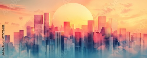 skyline, city landscape, skyscraper, cloud, sunrise, urban, architecture, horizon, colourful, modern, building, silhouette, panorama, vibrant, downtown, metropolis, scenic, dreamy, bright, atmospheric, glow, evening, dawn, urbanisation, twilight, aerial, landscape, beautiful, sun, towering, innovative, majestic, expansive, aethereal, visionary, tranquil, highrise, sprawling, inspiring, imaginative, futuristic, city, metropolitan, cloudscape, serene