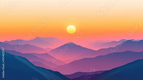 sunset, mountain, landscape, nature, scenic, horizon, outdoors, vale, purple, golden hour, digital artwork, gradient, peaceful, sunrise, silhouette, dusk, sky, tranquil, scenery, serene, morning, mountain, vibrant, stunning, breathtaking, twilight, majestic, dramatic, peak, remote, cloud, picturesque