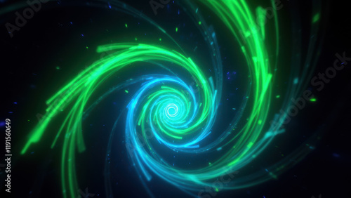 Vibrant swirling abstract art with blue, green, and purple hues set against a dark backdrop.