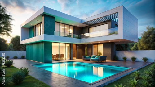 vibrant teal accents amidst minimalist modern architecture