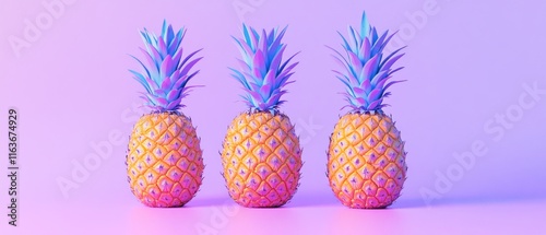 pineapple, fruit, tropical, neon, pink, purple, blue, vibrant, colours, bright, summer, food, photo, studio, still life, minimal, modern, trendy, stylish, artistic, creative, design, aesthetic, graphic, image, visual, art, object, background, composition, arrangement, row, three, closeup, delicious, sweet, juicy, exotic, nature, plant, illustration, digital, isolated, fresh, healthy, ripe, white, green, pineapple