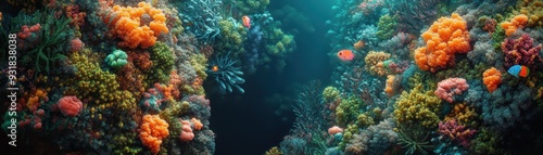 Vibrant underwater scene featuring colorful coral reefs teeming with marine life, showcasing nature's beauty.