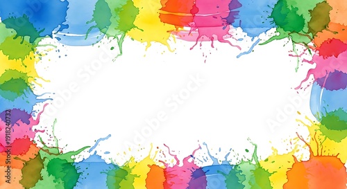 Vibrant Watercolor Splash Frame with White Center Space