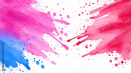 Vibrant watercolor splashes in pink and blue blend together, creating an artistic and colorful background for various creative projects.