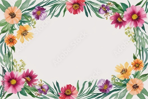 Vibrant Watercolor Wildflower Border Illustration for Invitations and Greeting Cards