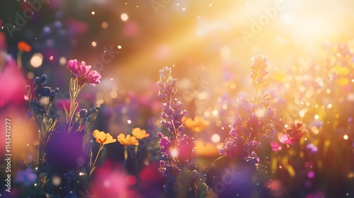 Vibrant Wildflowers Bloom in Golden Sunlight