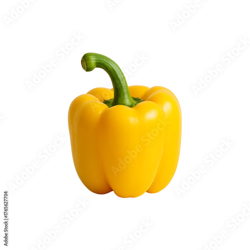 Vibrant yellow bell pepper with fresh green stem, perfect for healthy cooking inspiration and culinary projects