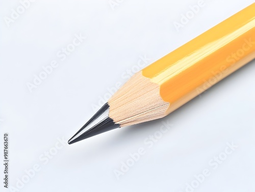 Vibrant Yellow Pencil With Tilt Shift Effect Against Clean White Background