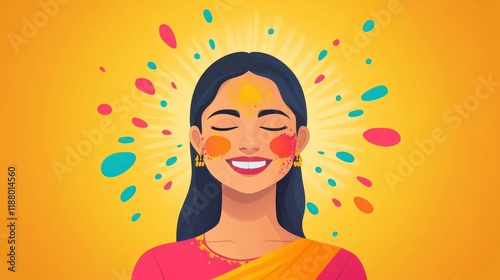 woman, joy, colours, festival, celebration, happiness, portrait, ethnic, traditional, culture, artistic, expression, smile, beauty, vibrant, background, cheerful, make-up, face, design, sunshine, india, art, wear, splash, hope, positivity, emotion, lifestyle, diversity, female, young, adult, attire, bright, fun, coiffure, joyous, occasion, visual, moment, spirit, confidence, serene, heritage