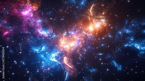 nebula, space, cosmos, galaxy, star, astronomy, universe, colourful, vibrant, cosmic, interstellar, science, astrophysics, celestial, colours, orange, blue, pink, purple, light, energy, pattern, background, abstract, artwork, illustration