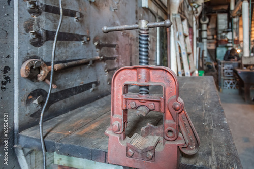 worktable, vise, anvil, seattle, factory, closed, empty, workbench, tool, wrench, grey, table, mechanic, instrument, screw, lever, clamp, cast iron, antique, old, vintage, shadow