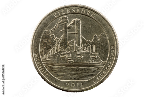 coinage, quarter, us, us, coin, us, silver, isolated, isolated on white, white background, cut-out, cut-out, cut-out, macro, closeup, closeup, closeup, state, e pluribus unum, used, scratched, worn, reverse, commemorative, money, cash, mississippi, 2011, ship