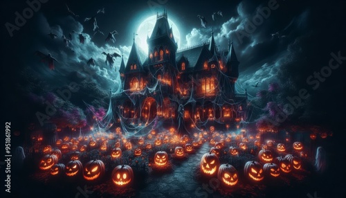 halloween, house, night, moon, castle, silhouette, holiday, haunted, bat, vector, illustration, autumn, cartoon, scarey, skittish, tree, horror, dark, bat, pumpkin, sky, celebration, art, card, design