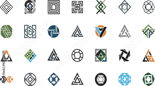 logotype, geometric, abstract, symbol, signs, icon, design, shape, graphic, modern, element, vector, illustration, template, square, circle, triangle, identity, corporate, business, creative, company, pattern, line, set, decoration, art, isolated, background, artwork, ornamental, minimalist
