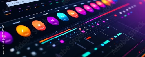 Video editing software UI, minimalist design, customizable timeline with vibrant highlight colors, clear icons for tools and options