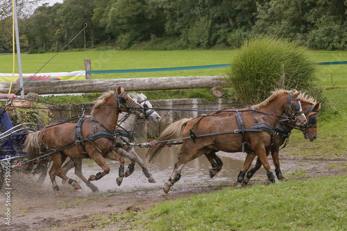 Vierspan paarden door de waterbak