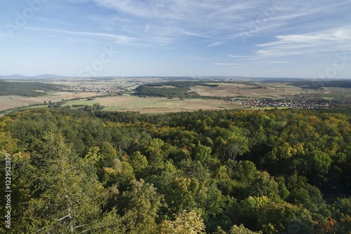 View from castle ruin Lichtenburg near Ostheim, Rhoen, Franconia, Germany, Europe