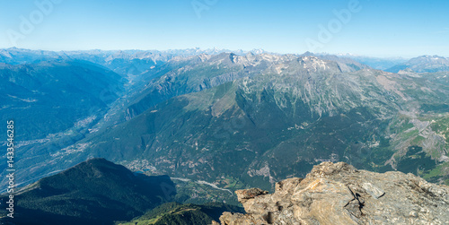 View from Rocciamelone mountain peak in Graian Alps in Italy near borders with France