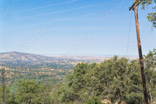 landscape, sky, nature, tree, electricity, forest, view, power, hill, cloud, cable, energy, green, blue, grass, summer, tree
