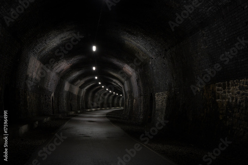 tunnel, copy space, skittish, pathway, lonely, lighting, disuse, dim, dark, claustrophobic, abandoned