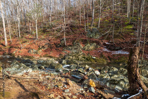 autumn, bare trees, creek, daytime, environment, fallen leaves, forest, ground, hiking, landscape, leaf litter, moss, natural, nature, outdoors, park, peaceful, perspective, preserve, quiet, remote, reservation, rock, scenic, serene, stone, stream, trail, tranquil, travel, tree, us, unspoiled, untouched, vegetation, view, virginia, water, wilderness, winter, timberland