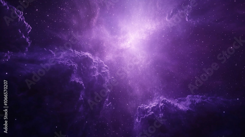 View of a vibrant purple nebula filled with stars in deep space captured at night