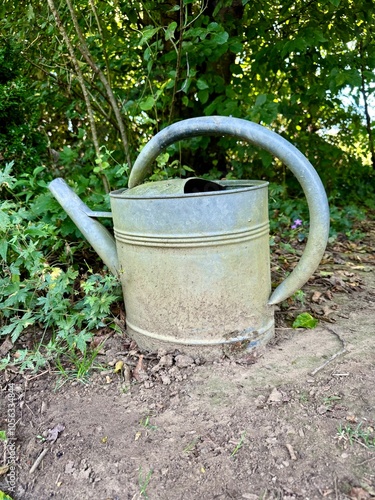 watering can, garden, summer, aged, metal, outside, water, watering, plant, nature, tool, container, leisure, gardening, calm, sunny, countryside, rural, farmland