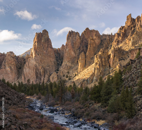 river, water, rock, tree, mountain chain, mountain, high, elevation, peak, summit, sunlight, sky, cloud, scenic, nature, landscape, travel, calmness, state park, outdoors, day, nobody, no people, oregon, us, us