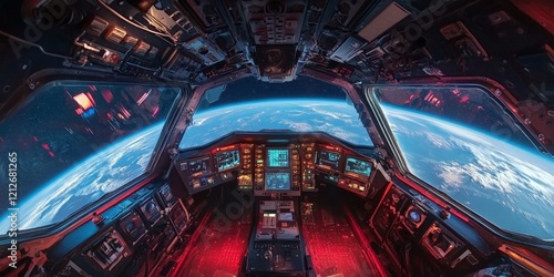 space, spacecraft, earth, science fiction, window, futuristic, galaxy, exploration, spaceship, interior, adventure, technology, star, cosmos, travel, planet, science fiction, alien, space-travel, cosmic, astronaut, celestial, universe, high technology, red light, intergalactic, digital artwork, cinematic, modern, orbital, robotic, conceptual, innovation, outer space, inspirational, technically