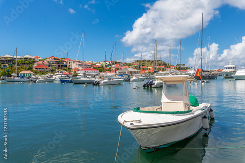 view, fort, oscar, harbor, st, barth, outdoors, day, central america, caribbean, west indies, cloudy sky, fortress, old, past, history, national landmark, boat, moored, white, water, rope, mast, blue, colours, colours, outside, historical, historic, heritage, cultural, culture, fort, fortified, fortification, protection, defense, harbor, port