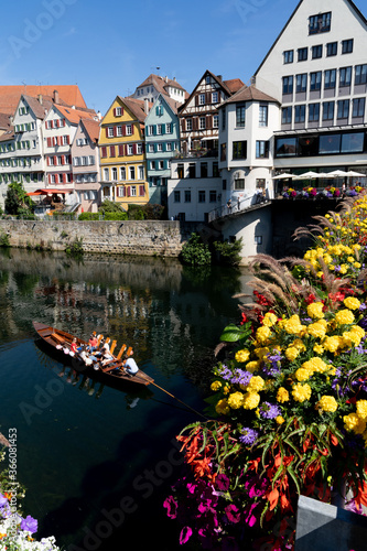 europa, european, german, neckar, boat, building, built structure, city, colourful, flower, green, historic, navigate, pole, push, reflect, river, river bank, riverside, sightseeing, steer, summer, holiday maker, travel, tree, visit, water, wooden boat