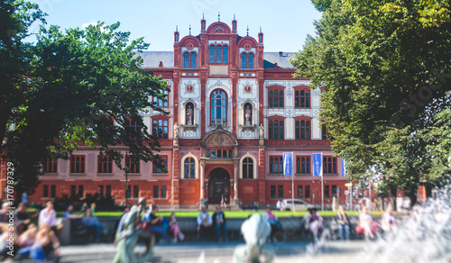 View of Rostock city old town market square with Town Hall, historical center, Germany