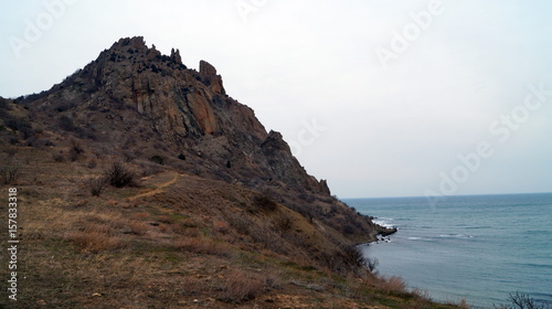 sea, black, view, beach, coast, crimea, mountain, sky, landscape, blue, summer, sun, resort, nature, white, travel, wave, coastline, green, man, bay, outdoors, metal, detail, dark, cloud, outside, sunlight, sand, cloud, print, island, hill, adventure, walk, solution