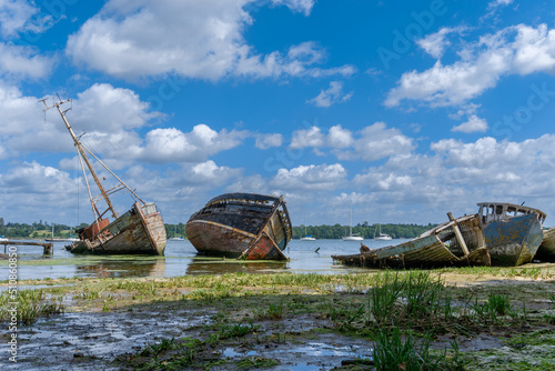 view of the boat graveyard at Pin Mill on the River Orwell in Suffolk at low tide