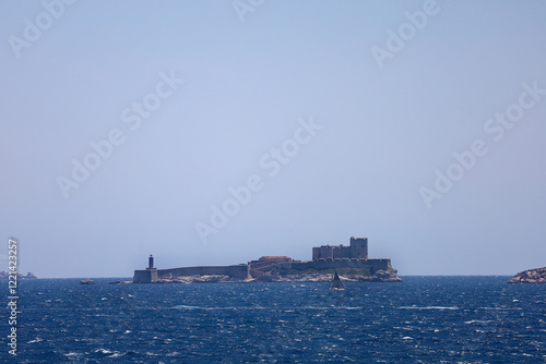 View of the historical Chateau d'lf (if castle) in the Mediterranean sea island in Marseille France.
