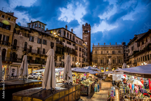 View of the Piazza delle Erbe in the evening. Verona, Veneto, Italy