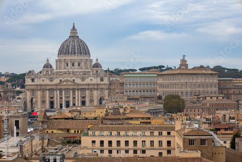 View of Vatican City, with St. Peter's Basilica from the balconies of Castel Sant'Angelo, Rome, Italy.