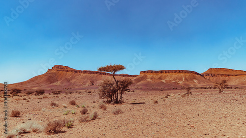 View on the moroccan desert, drying, desertification, isolated tree