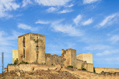 Views from the Parque de la Retama of the castle of Alcalá de Guadaira in Seville, in blue sky and white clouds