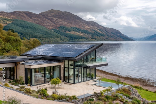 villa in the Scottish Highlands, black framed solar panels