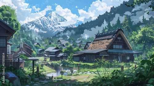 village landscape anime style