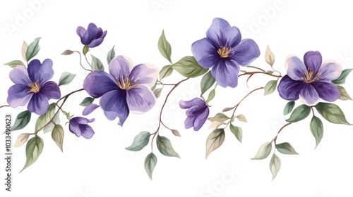 Vine with purple flowers illustration perfect for floral designs. Nature