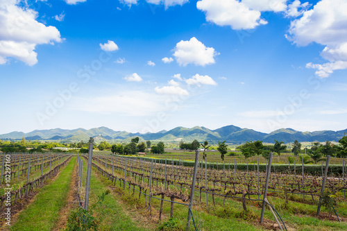 grape, vine, vinery, agriculture, blue, bunch, cloud, flocked, countryside, farm, farming, field, food, fresh, fruit, grapevine, green, grow, growing, harvest, landscape, leaf, natural, nature, plant, rural, season, summer, siam, tree, vale, vine-growing