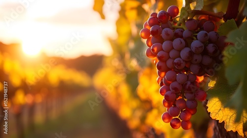 Vineyard at Sunset with Ripe Purple Grapes – Scenic Wine Photography