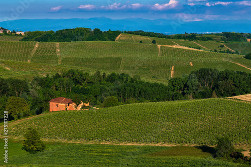 Vineyards and woods on the Montalbera Hillside located in the Municipality of Castagnole Monferrato Piedmont Italy